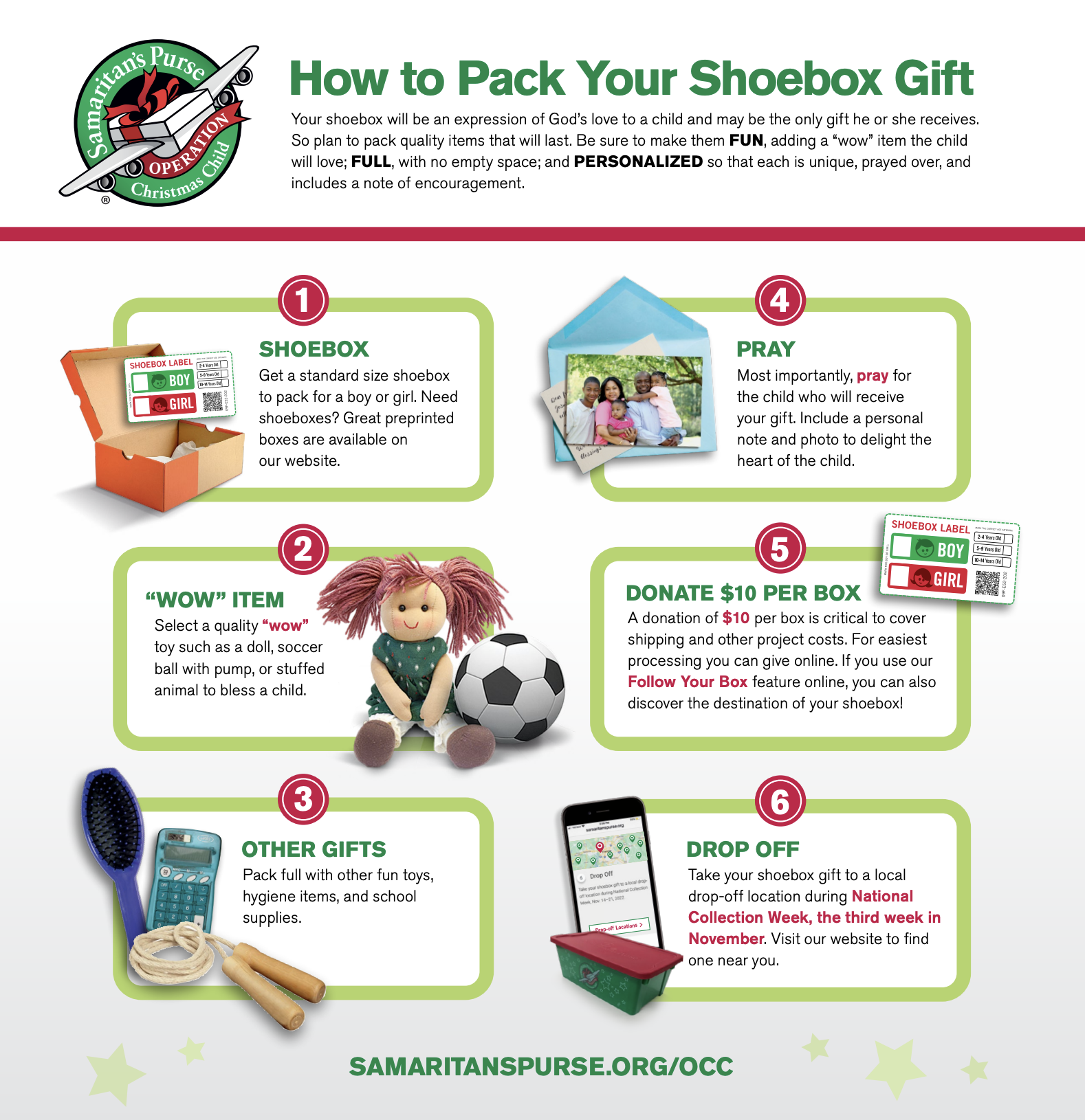 Wondering what to put in your shoebox? Here’s a helpful list!